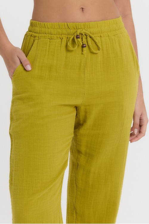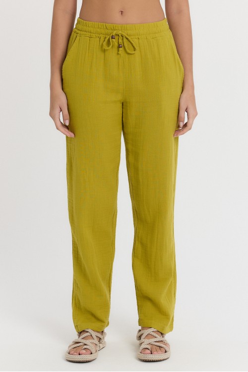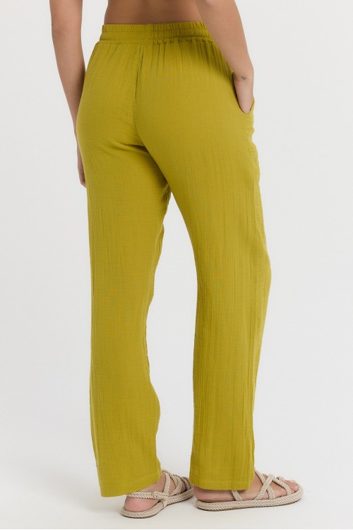 Kadın Müslin Klasik Hardal Sarı Pantolon