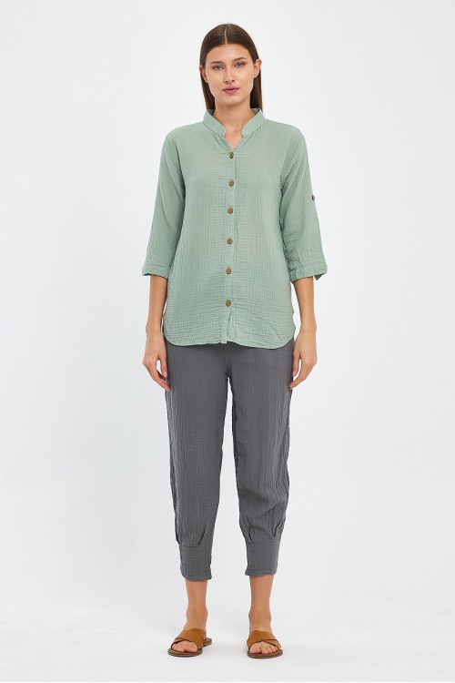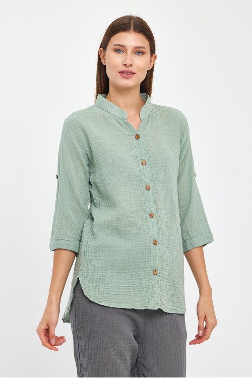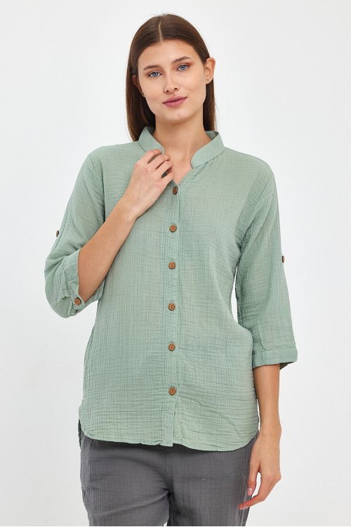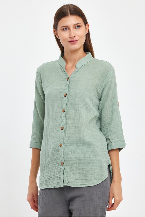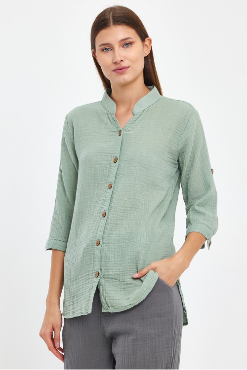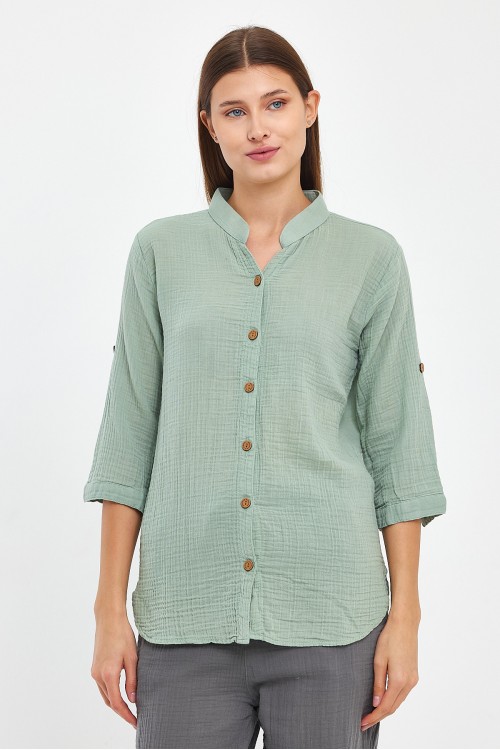 KADIN GÖMLEK - MÜSLİN HAKİM YAKA ÇAĞLA YEŞİLİ UZUN KOL GÖMLEK - 1010