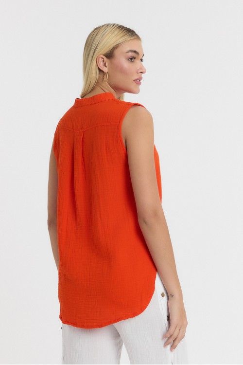 KADIN GÖMLEK - MÜSLİN HAKİM YAKA SIFIRKOL GÖMLEK TURUNCU - 1090