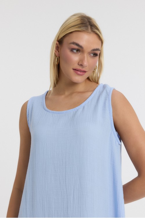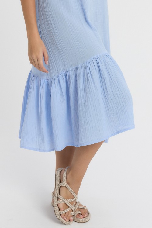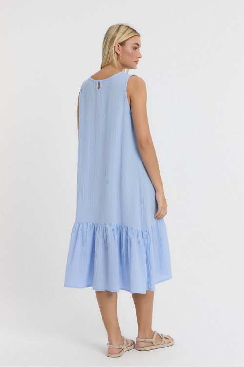 MÜSLİN MİDİ ASKILI ELBİSE MAVİ -3040