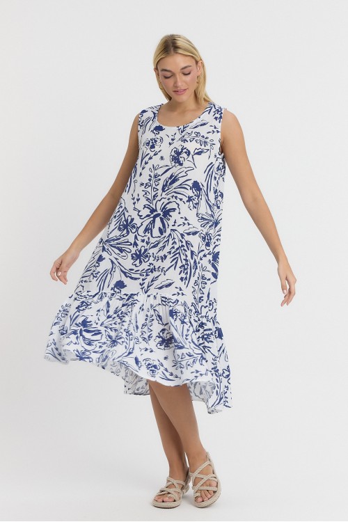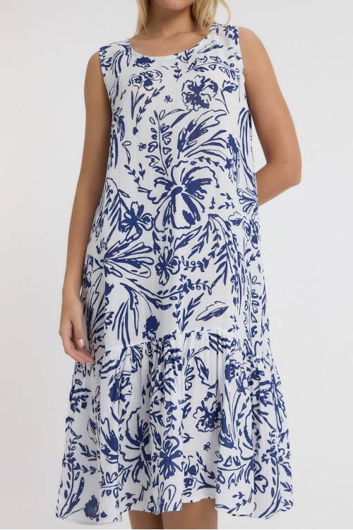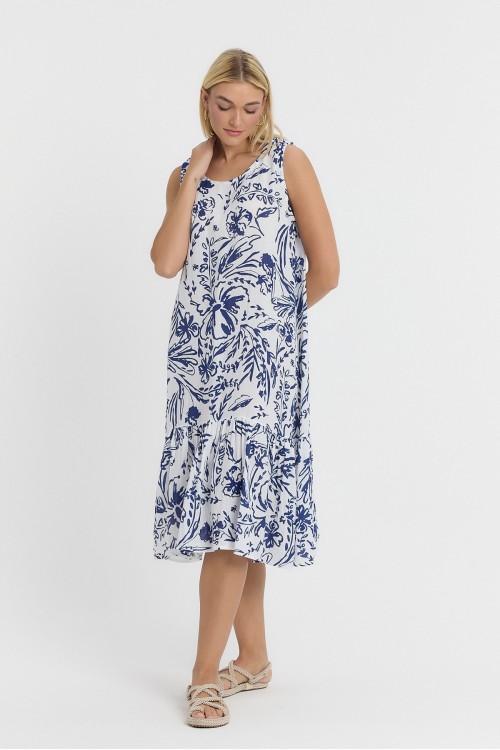 ŞAL DESEN ASKILI MİDİ ELBİSE - 3045