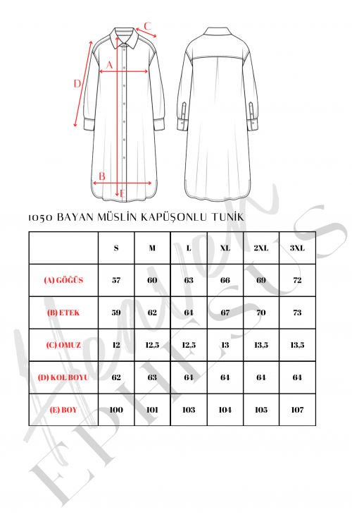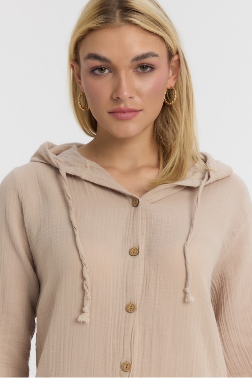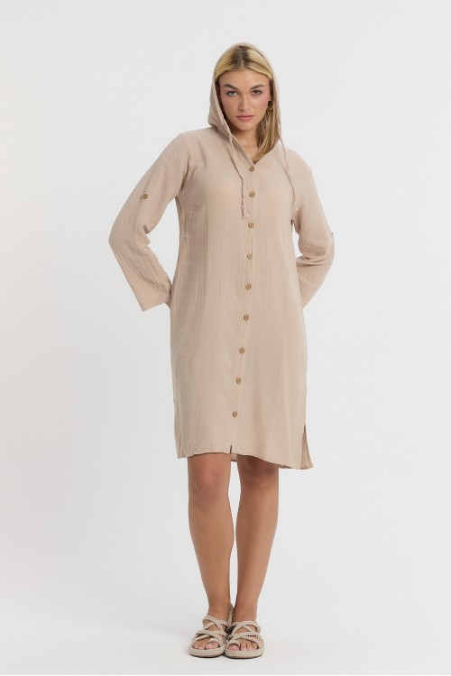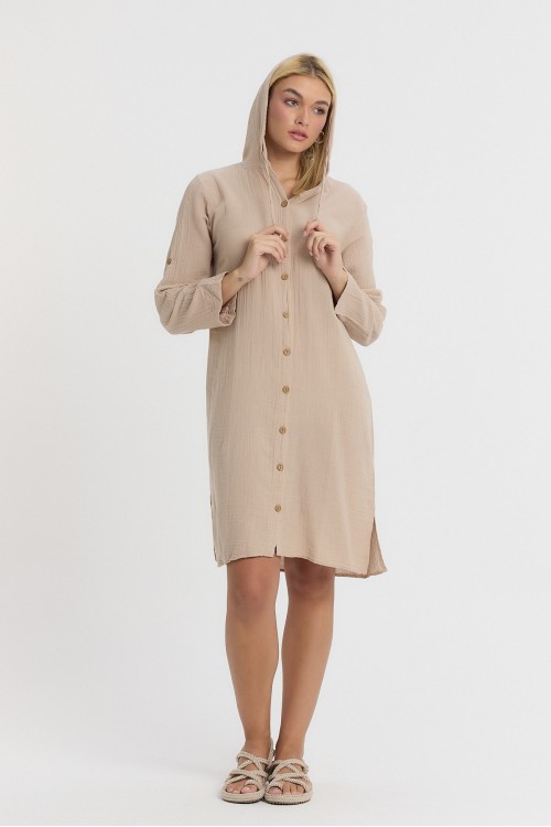 KADIN TUNİK - MÜSLİN KAPÜŞONLU BEJ/KREM UZUN KOL - 1050