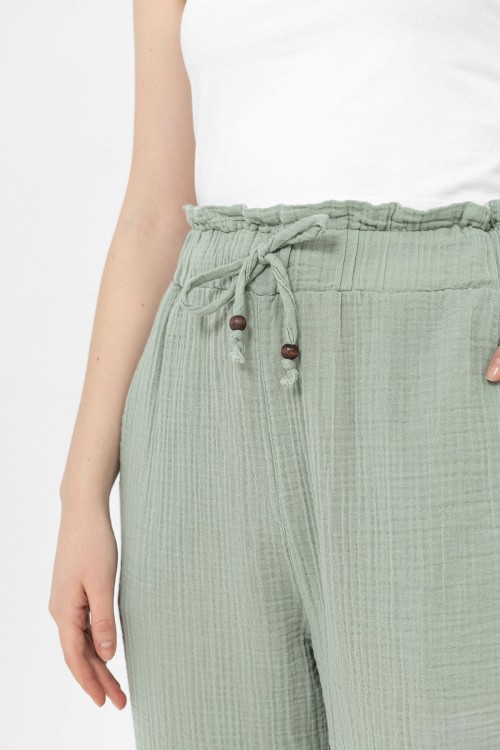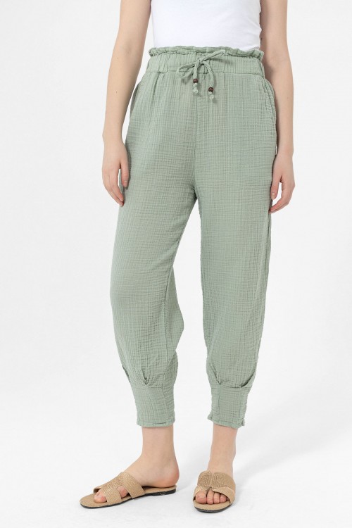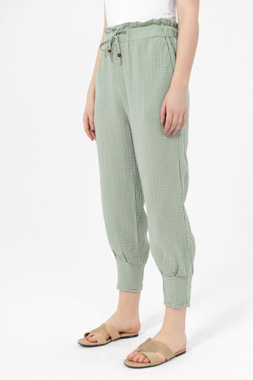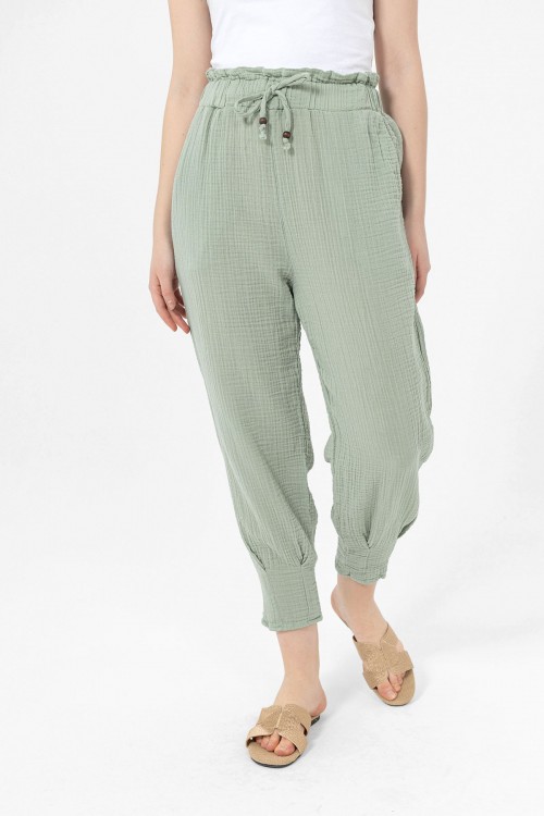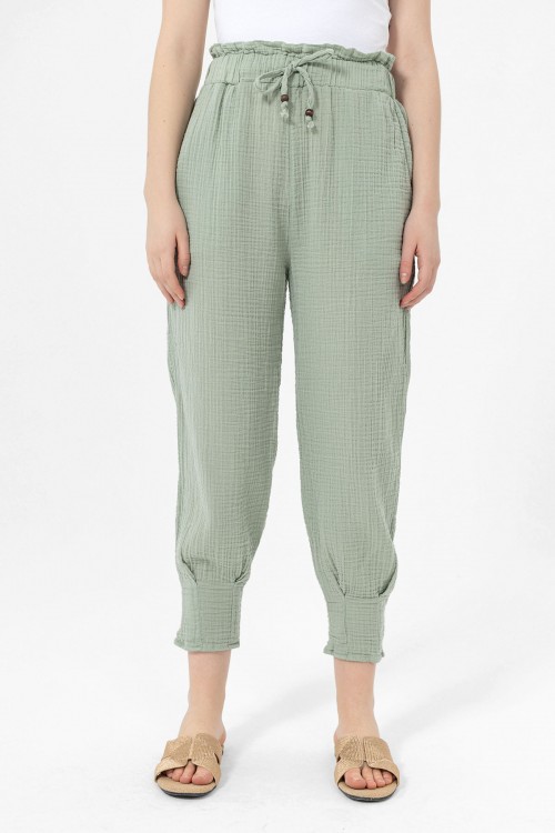 Kadın Müslin Özel Paça (Cennet) Çağla Yeşili Pantolon