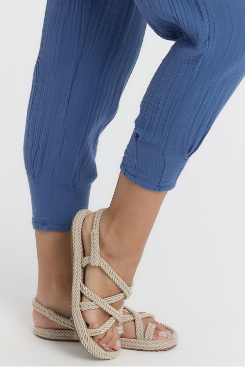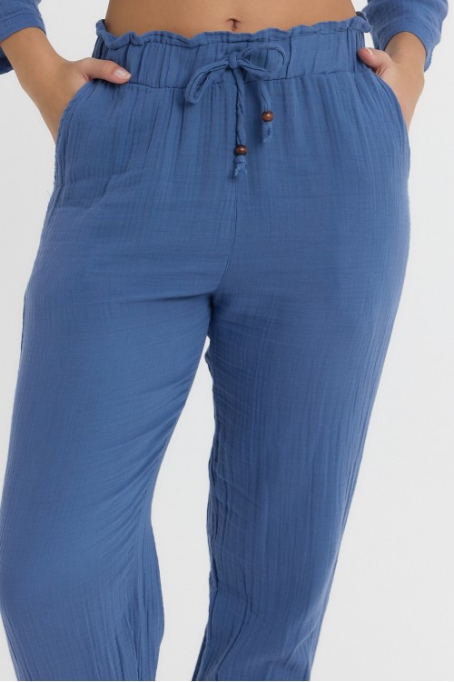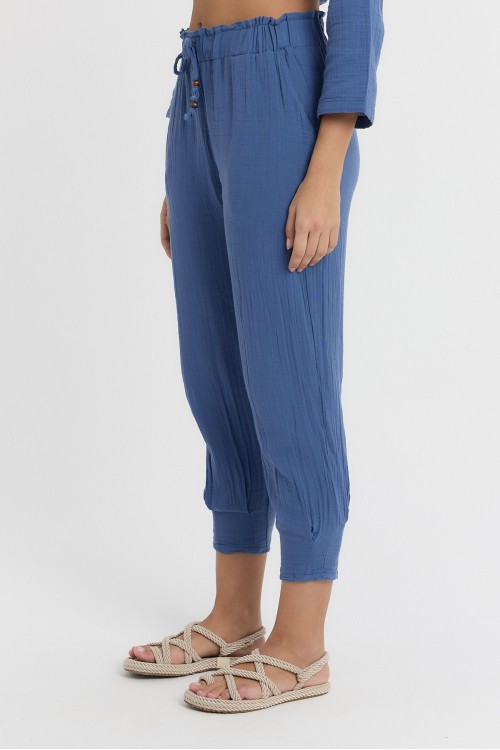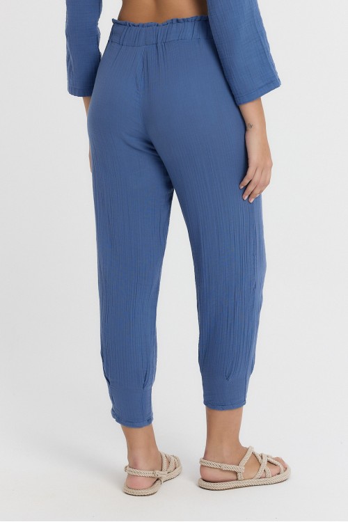Kadın Müslin Özel Paça (Cennet) Petrol Mavi Pantolon