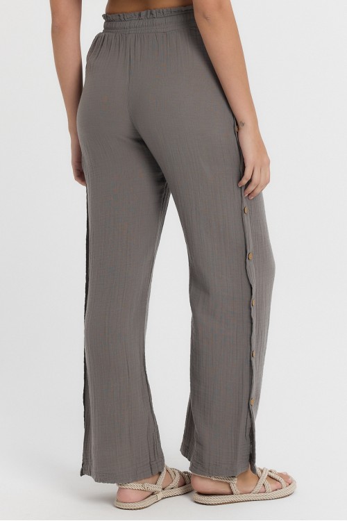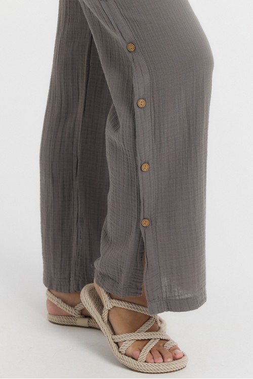 -MÜSLİN DÜĞMELİ PANTOLON ANTRASİT-2100