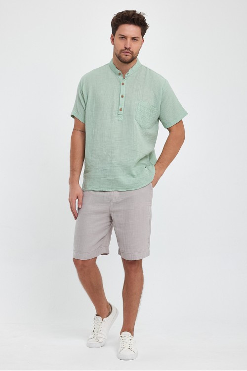 Erkek Müslin Hakim Yaka Yarım Patlı Çağla Yeşil Gömlek -4020