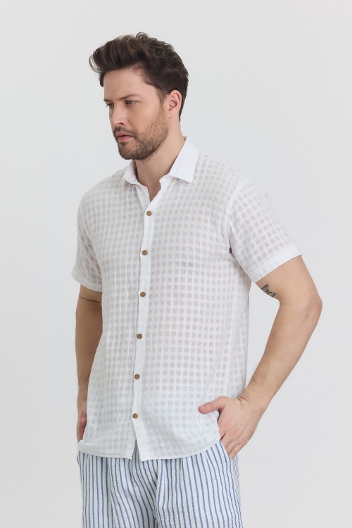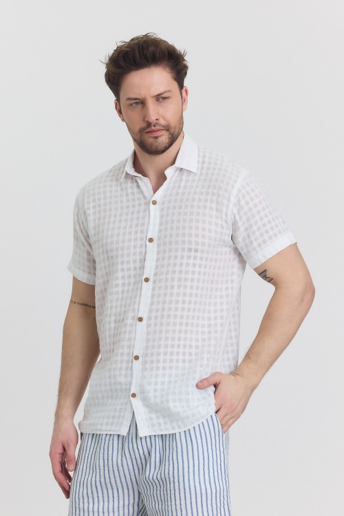 MÜSLİN BEYAZ WAFFLE YAKALI KISA KOL GÖMLEK -4045