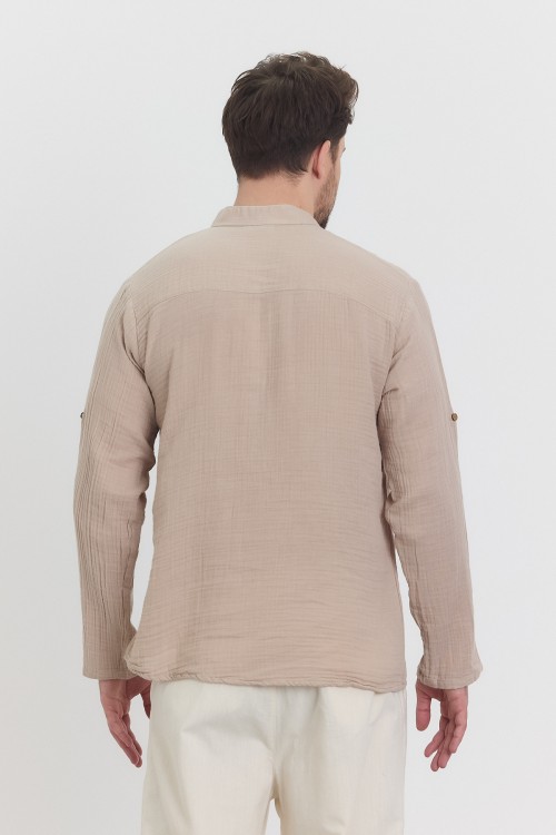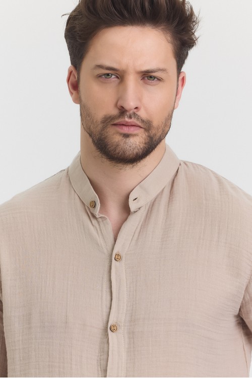 Erkek Müslin Hakim Yaka Uzun Kol Toprak Gömlek