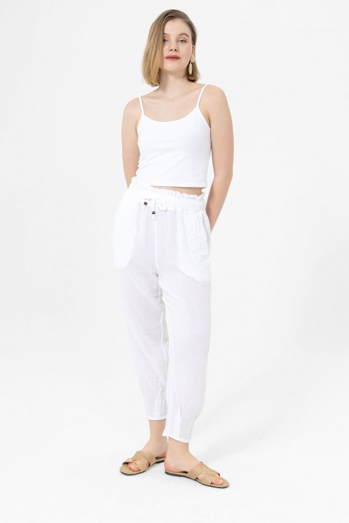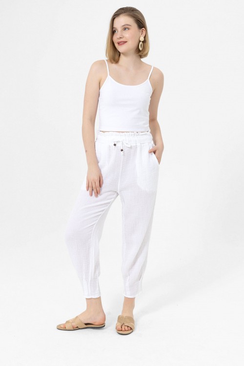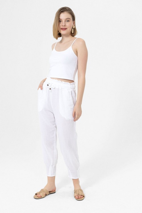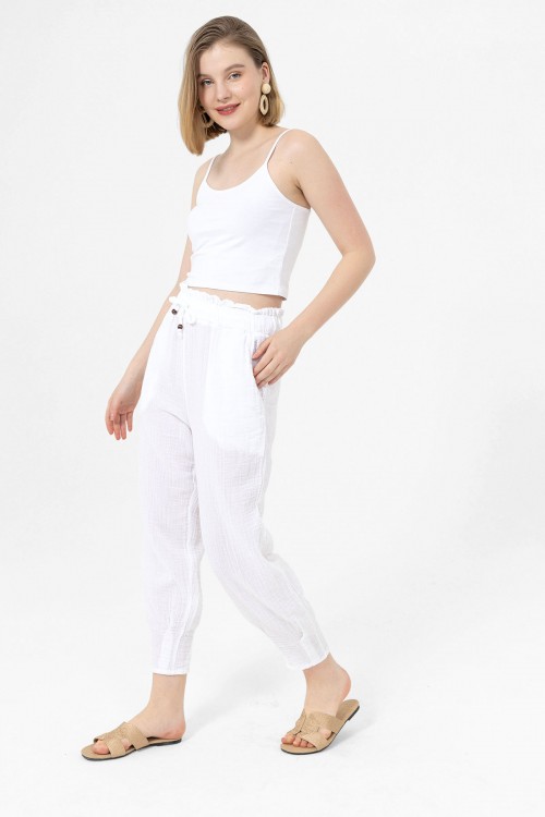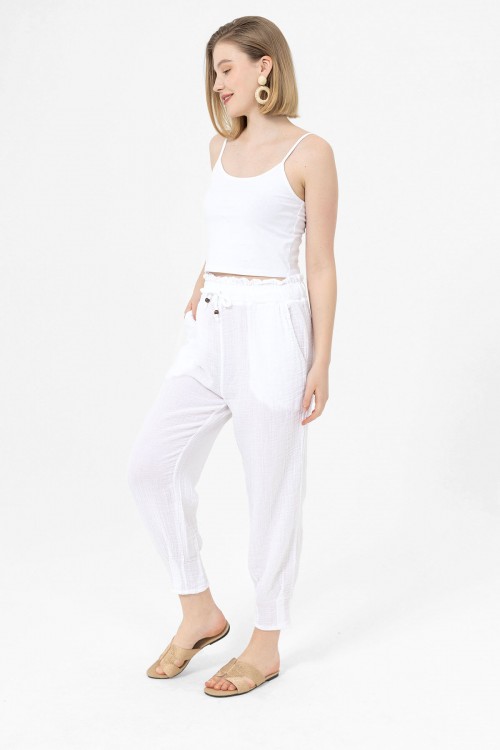 Kadın Müslin Özel Paça (Cennet) Beyaz Pantolon