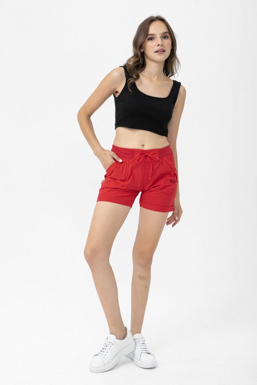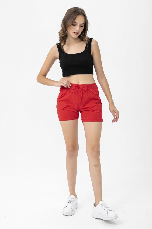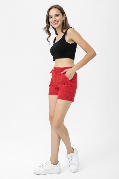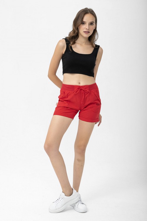 Kadın Pamuklu Kırmızı Mini Şort