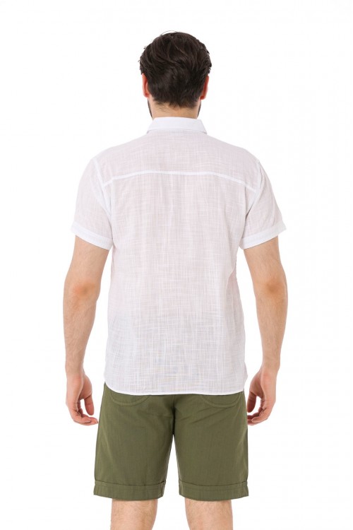 Erkek Yakalı Kısa Kollu Keten Gömlek Beyaz -4510
