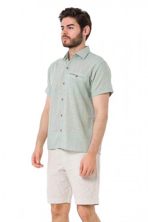 Erkek Yakalı Kısa Kollu Keten Gömlek Çağla Yeşili -4510