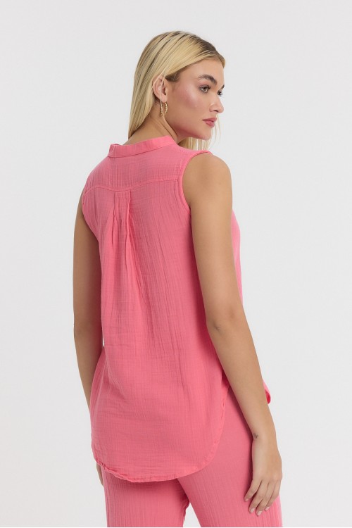 KADIN GÖMLEK - MÜSLİN HAKİM YAKA SIFIRKOL GÖMLEK PEMBE - 1090