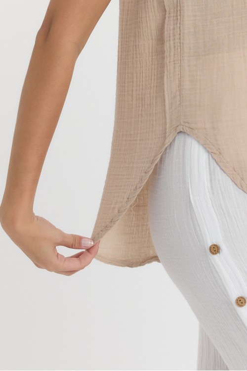 KADIN GÖMLEK - MÜSLİN HAKİM YAKA SIFIRKOL GÖMLEK KREM - 1090
