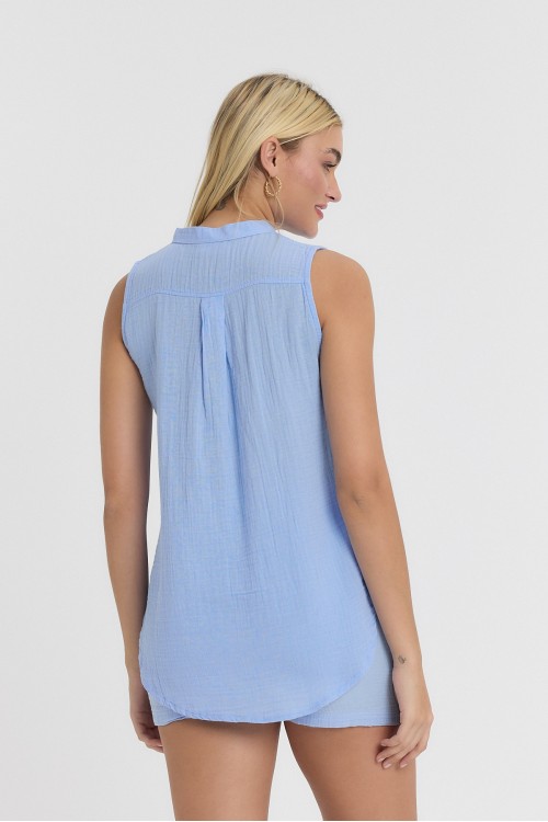KADIN GÖMLEK - MÜSLİN HAKİM YAKA SIFIRKOL GÖMLEK MAVİ - 1090