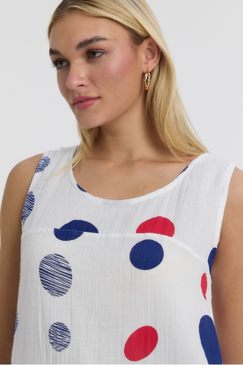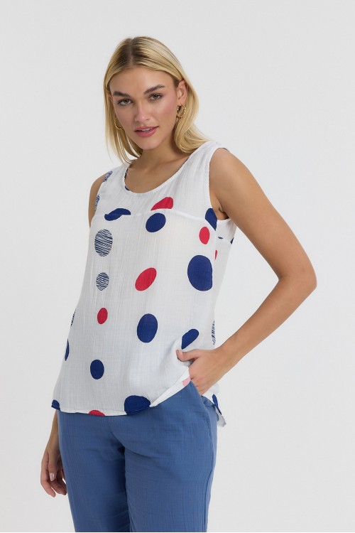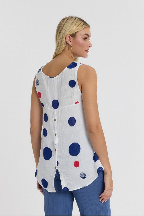 KADIN ASKILI BLUZ - MÜSLİN PUANTİYE DESEN ARKASI DÜĞMELİ - 1115