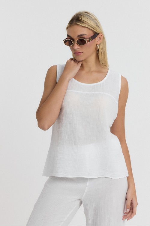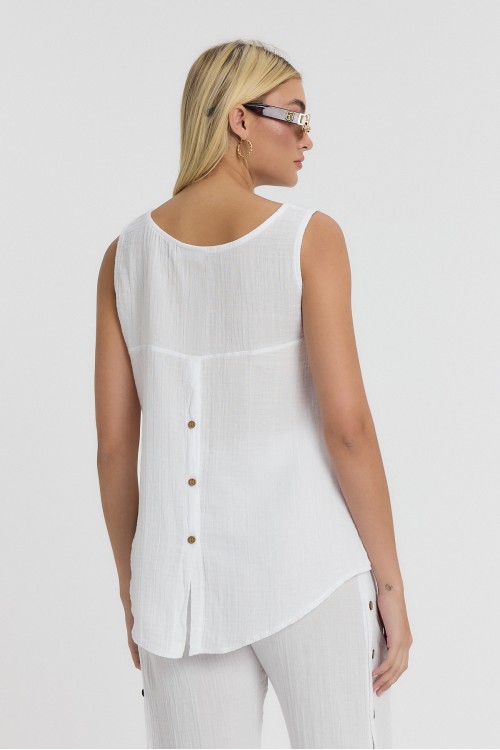 KADIN ASKILI BLUZ - MÜSLİN SIFIR KOL ARKASI DÜĞMELİ BLUZ BEYAZ - 1110