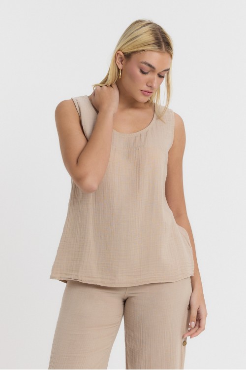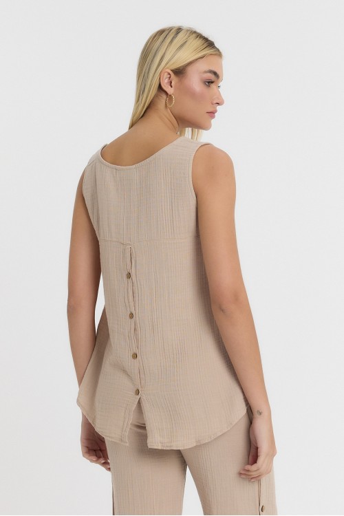 KADIN ASKILI BLUZ - MÜSLİN SIFIR KOL ARKASI DÜĞMELİ BLUZ KREM - 1110