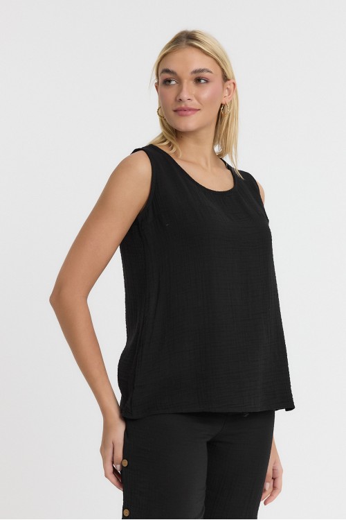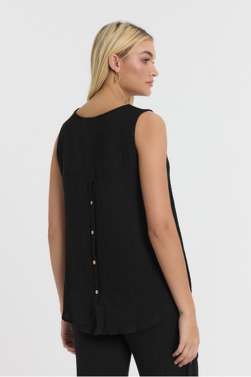 KADIN ASKILI BLUZ - MÜSLİN SIFIR KOL ARKASI DÜĞMELİ BLUZ SİYAH - 1110