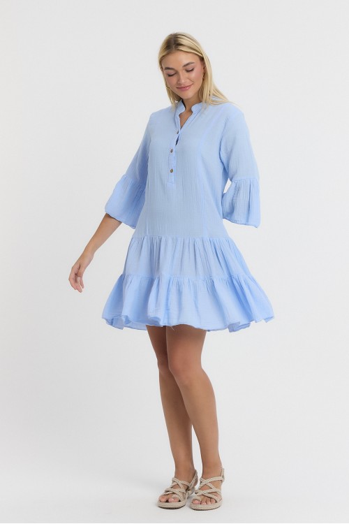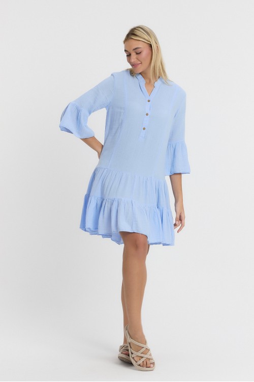 KADIN TUNİK - MÜSLİN SARANDA TUNİK MAVİ - 1120