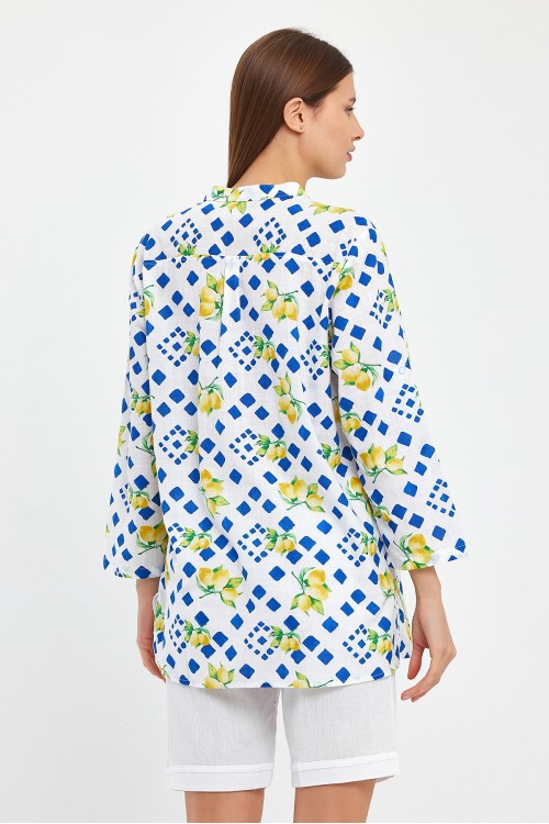 LİMON DESENLİ YARIM PAT BLUZ-1543