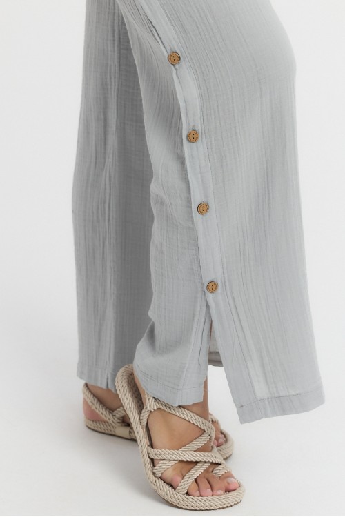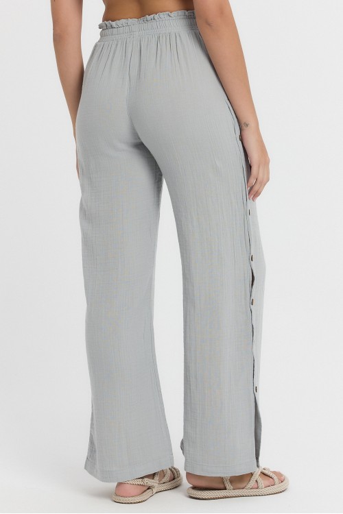-MÜSLİN DÜĞMELİ PANTOLON GRİ-2100