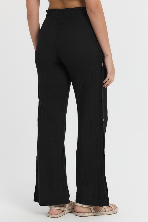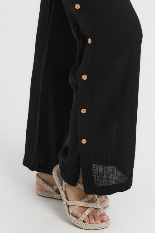 -MÜSLİN DÜĞMELİ PANTOLON SİYAH-2100