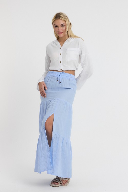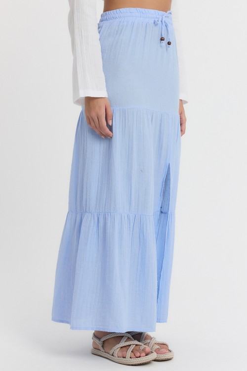MÜSLİN YIRTMAÇLI UZUN ETEK MAVİ -2120