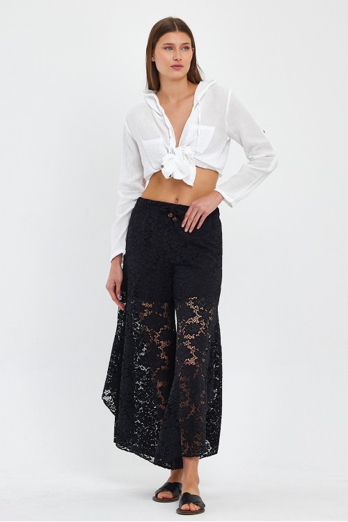 DANTELLİSİYAH GÜL DESEN ŞALVAR PANTOLON - 2140
