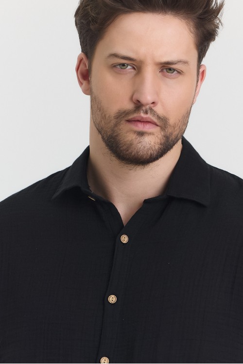 SİYAH MÜSLİN YAKALI UZUN KOL GÖMLEK -4030