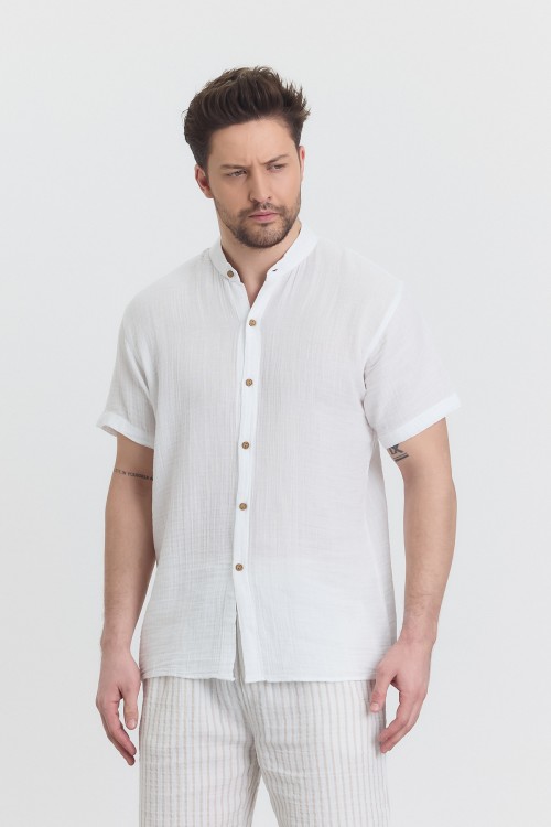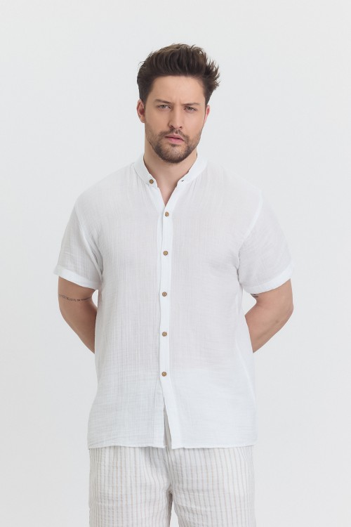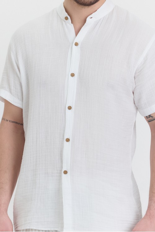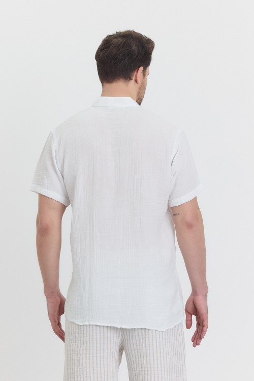 MÜSLİN HAKİM YAKA KISA KOL GÖMLEK BEYAZ -4080