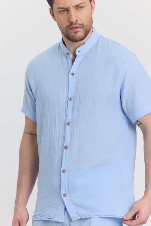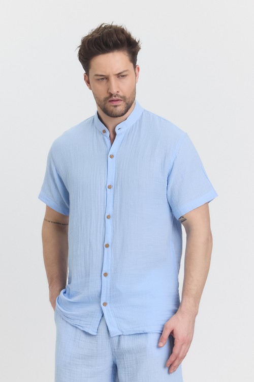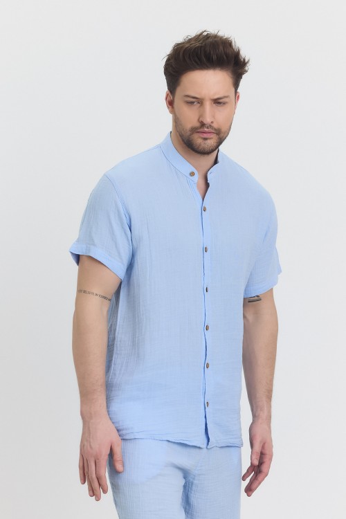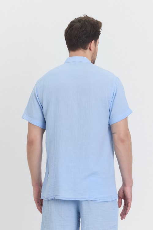 MÜSLİN HAKİM YAKA KISA KOL GÖMLEK MAVİ -4080