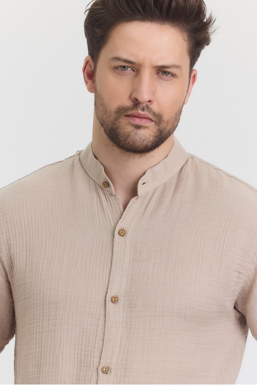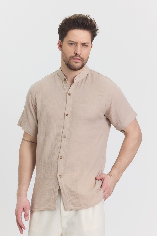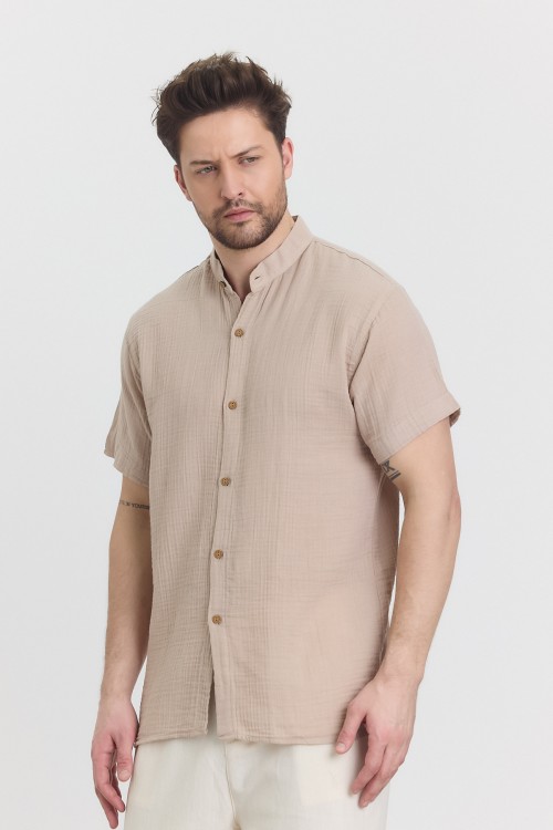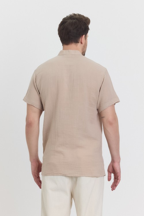 MÜSLİN HAKİM YAKA KISA KOL GÖMLEK TOPRAK -4080